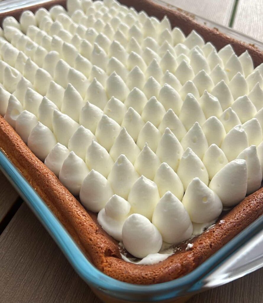 הקצפת נמרחת על העוגה לאחר קירור מלא.