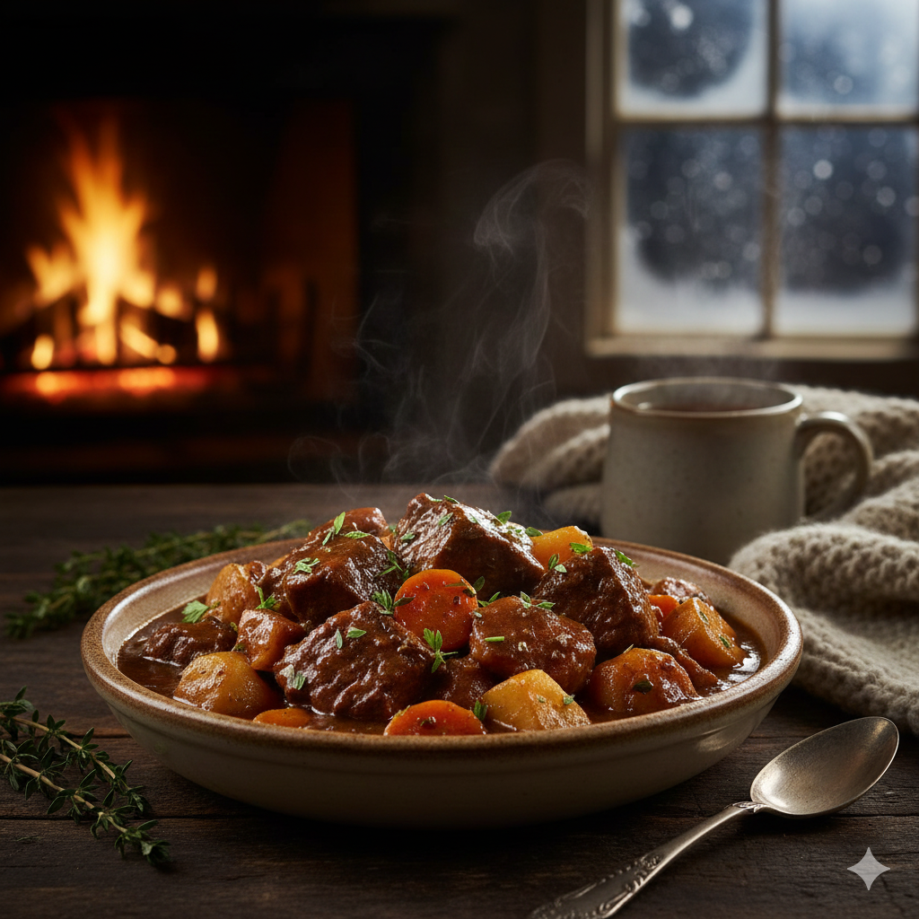 מנה קלאסית, משביעה ומנחמת, שמתבשלת לאט ומפתחת טעמים עמוקים. הבקר הופך רך ועסיסי, וירקות השורש סופגים את כל העסיסיות של הרוטב. `