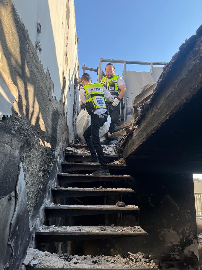 מתנדבי זק"א לסייע לצוותי צה"ל סמוך לגדר בקיבוץ בארי. בדרכם לגדר איתרו מתנדבי זק"א באחד הבתים השרופים בקיבוץ 2 גופות של אישה וילד שנרצחו ונשרפו.