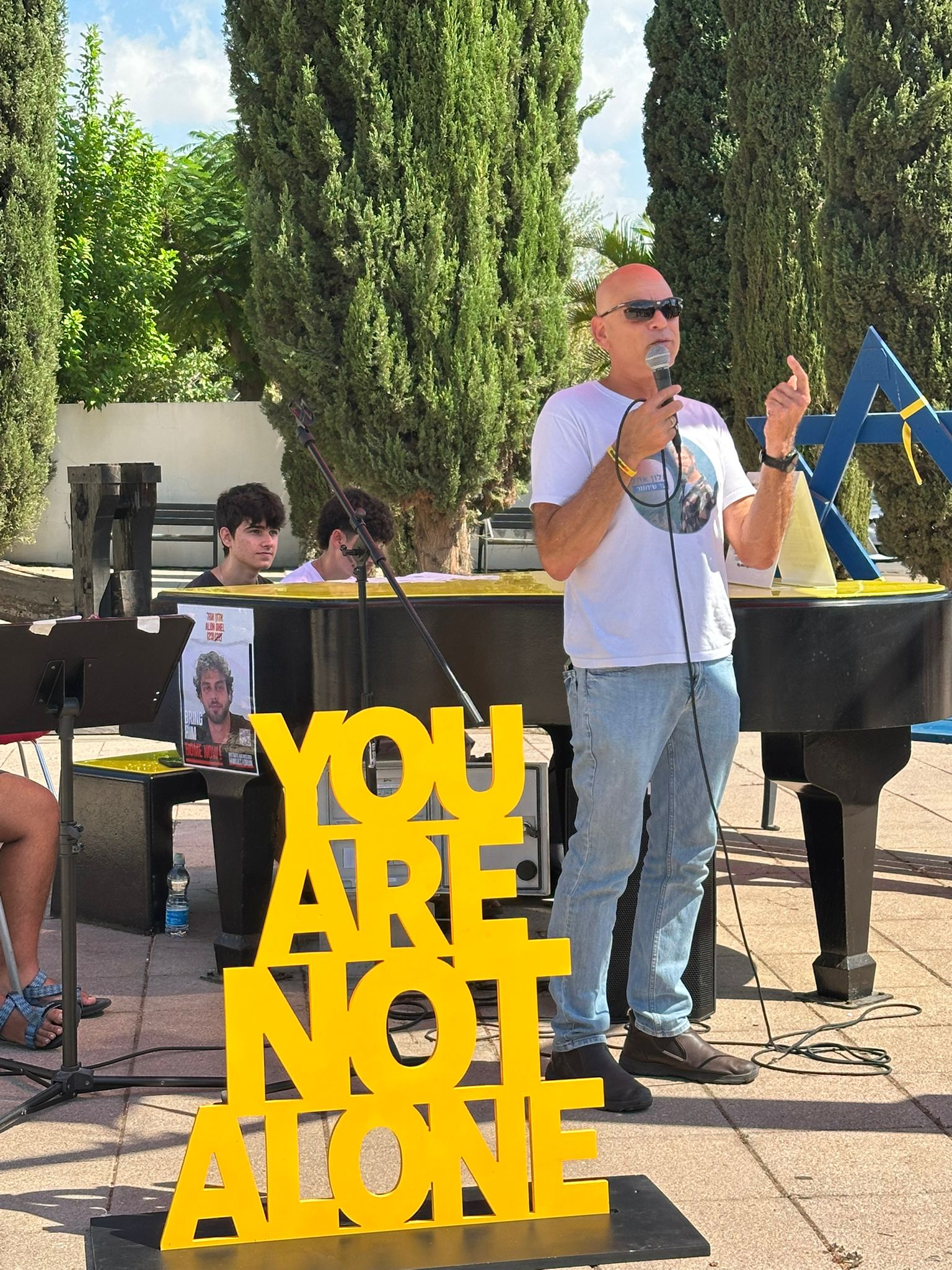 על הפסנתר חקוק המשפט המצמרר שכתבה משפחתו: "you're not alone", מזכרת כואבת לעולם שאלון עדיין חטוף בעזה ושאין בכוונתם ובכוונת כל עם ישראל לשכוח אותו ואת שאר החטופים בשבי.