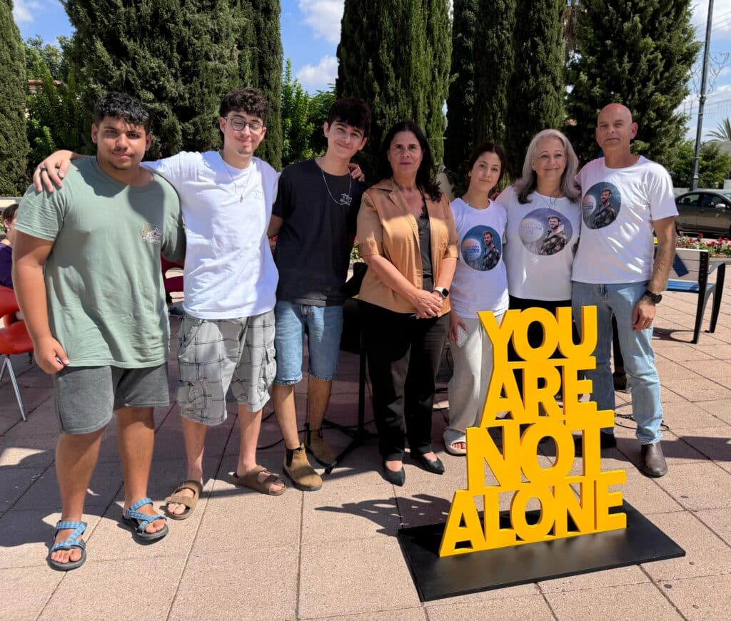 על הפסנתר חקוק המשפט המצמרר שכתבה משפחתו: "you're not alone", מזכרת כואבת לעולם שאלון עדיין חטוף בעזה ושאין בכוונתם ובכוונת כל עם ישראל לשכוח אותו ואת שאר החטופים בשבי.