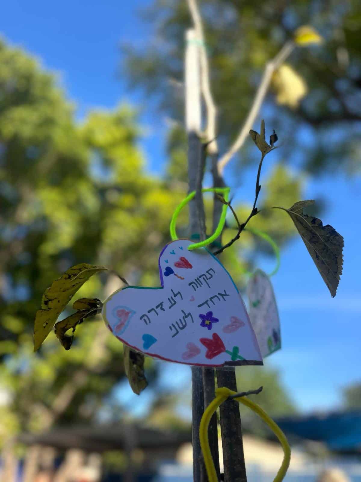 "בתקווה שיהיה לנו טוב בארץ" – אלה המילים שאחד מילדי גן חרצית תלה על עץ התקווה.