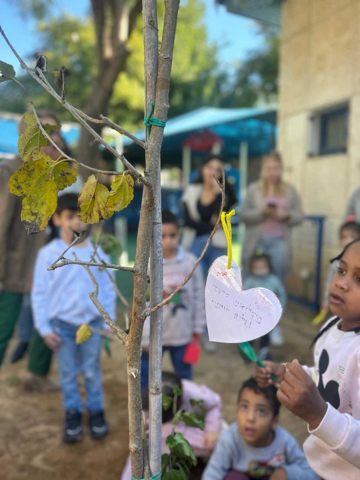 כל ילד הכין ״לב״ בו כתב משפט של תקווה ויחד עם ניבה ושי ונקרט, הוריו של עומר ונקרט, מילאו ילדי הגן את העץ.