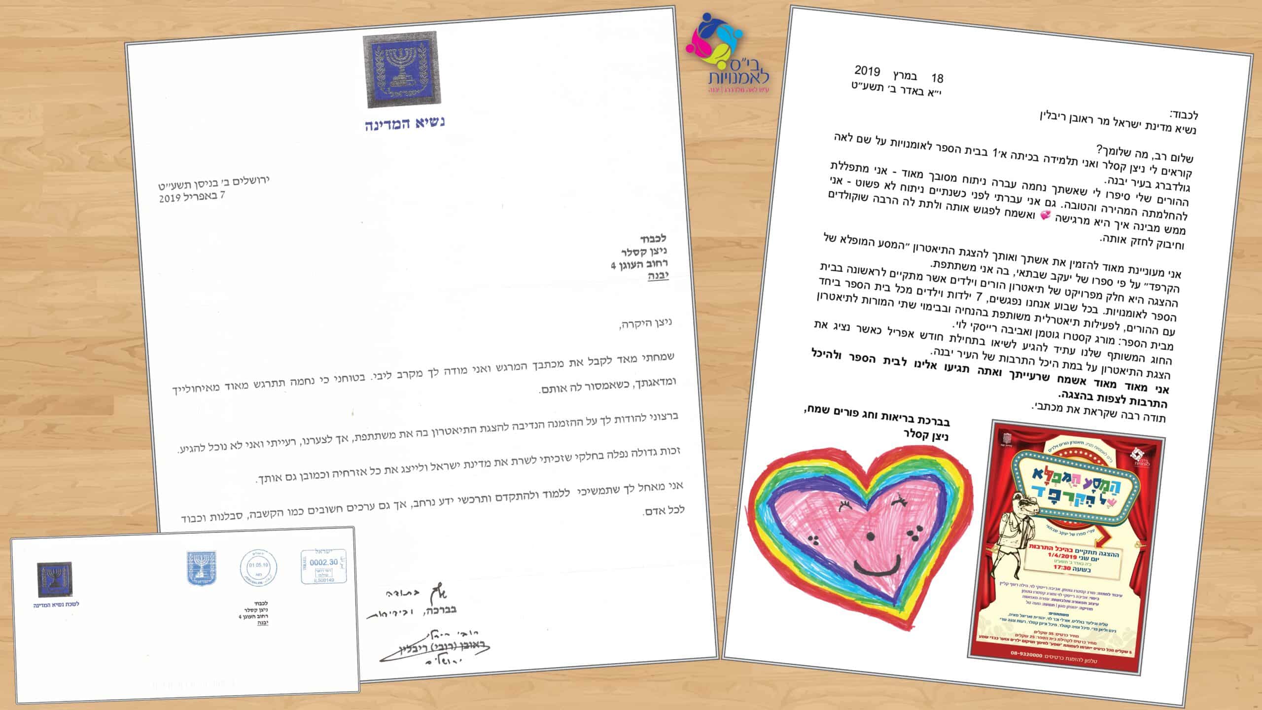 ניצן קסלר, תלמידת כיתה א' מיבנה כתבה לנשיא המדינה: "מתפללת להחלמתה של אישתך נחמה" וקיבלה תשובה מרגשת | צפו במכתבים
