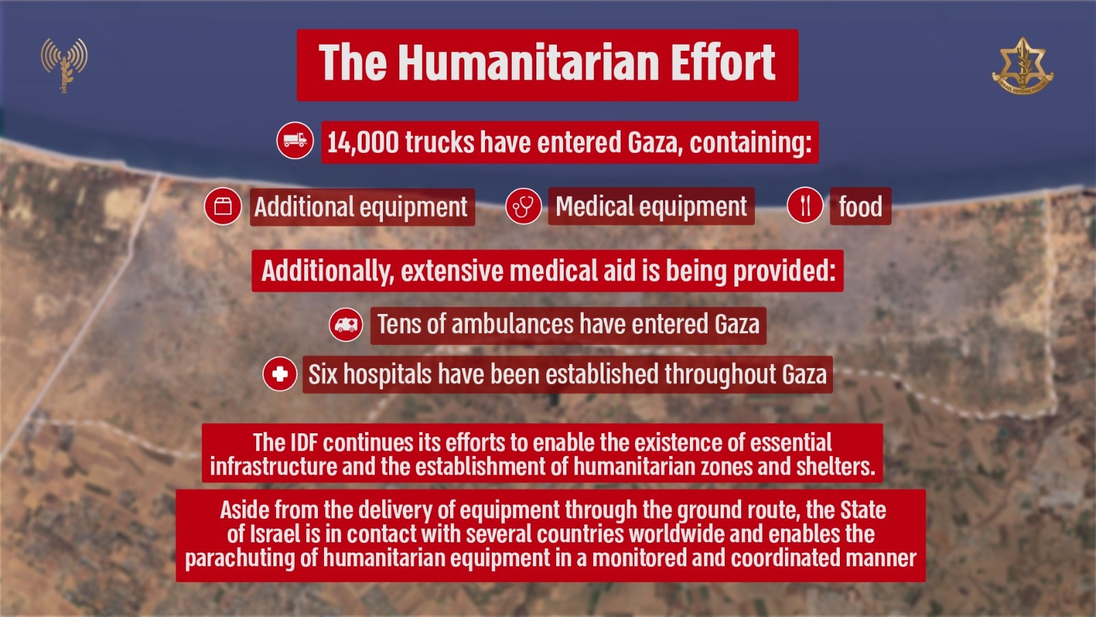 צה"ל יחד עם ארגונים בין-לאומיים ממשיך במאמצים לאספקת סיוע הומניטרי לעזה