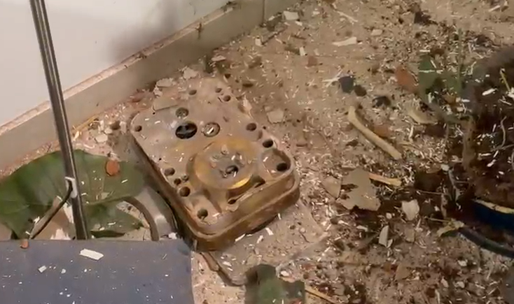 נזק כבד נגרם למבנה בעיר בעקבות המטח האחרון: הרסיס פילח את התקרה וגרם להרס ברכוש, אך הקפדה על הנחיות פיקוד העורף מנעה אסון כבד בנפש.