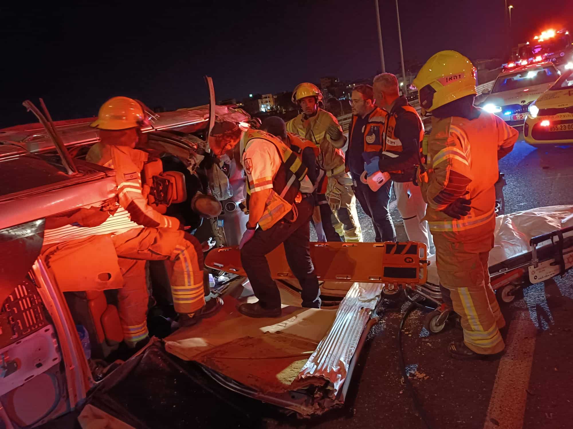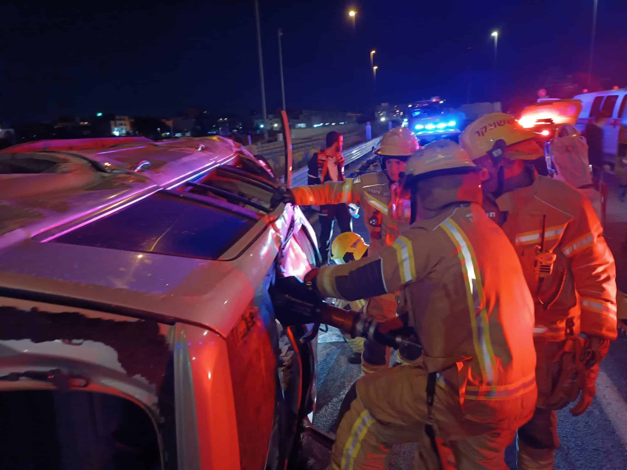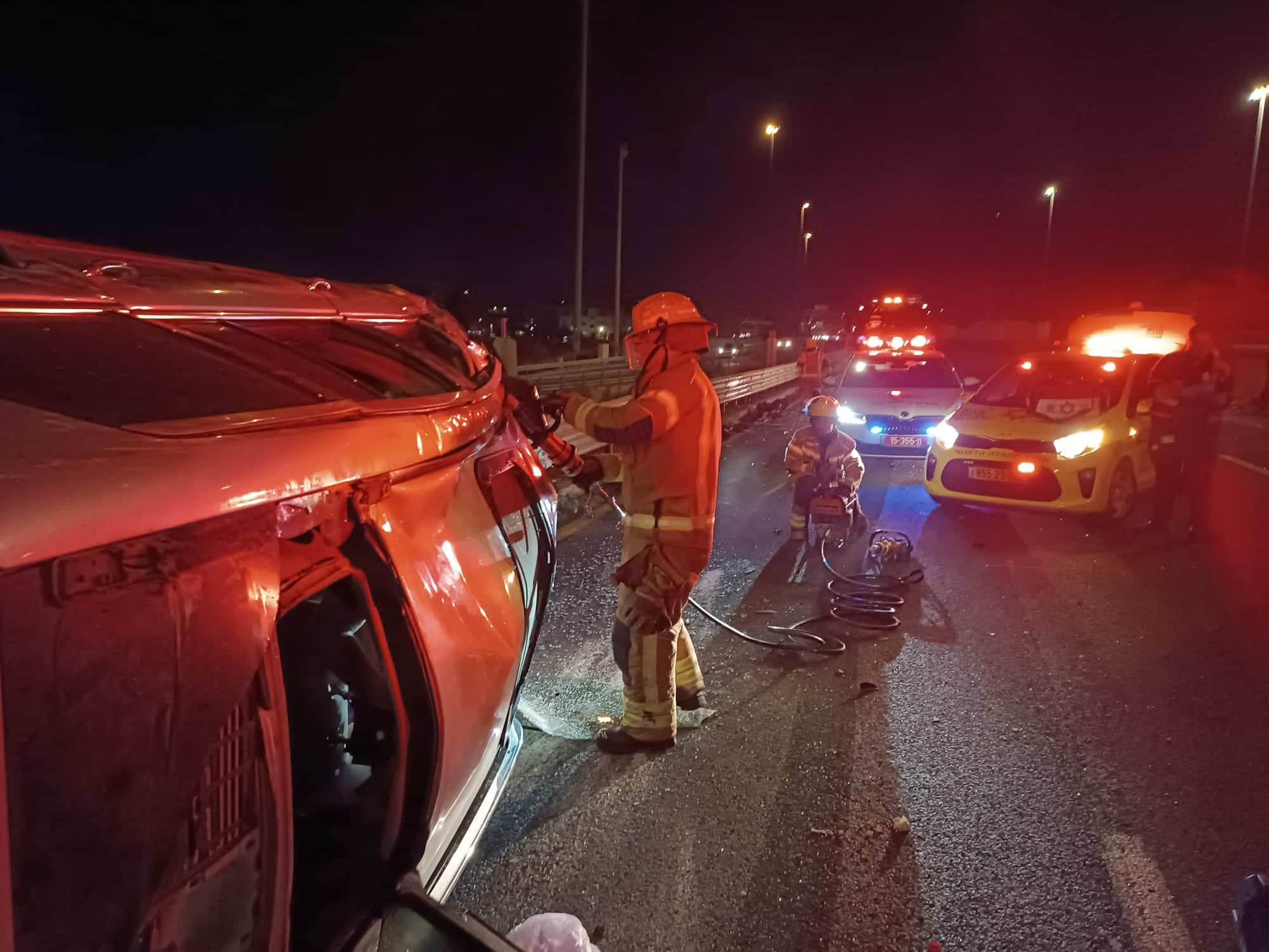 הצוותים הגיעו למקום וזיהו רכב הפוך על צידו כאשר בתוכו לכוד ופצוע נוסף מחוץ לרכב.