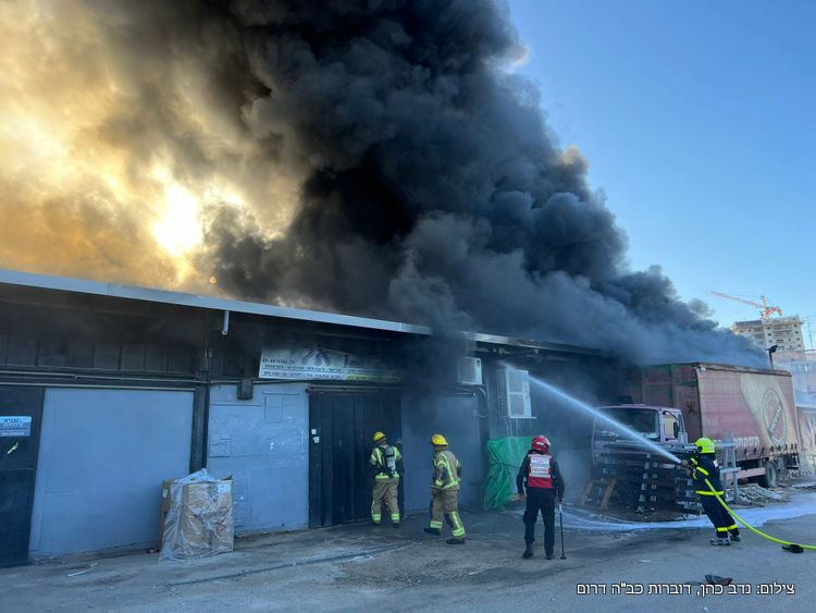 לפי כבאות והצלה, "לאחר הערכת מצב מדובר במבנה רכבת עם עסקים מסוגים שונים. במקום פועלים לוחמי האש רבים במספר גזרות בסיוע מנוף גבהים, נשרף במקום עסק גדול של חד פעמי וככל הנראה נגרייה וחנות של כלי בניין. חלק מהמבנים קרסו בעקבות הטמפ' הגבוהה ולוחמי האש פועלים במשנה זהירות תוך מניעת התפשטות השריפה לעסקים נוספים. חוקר שריפות מכבאות והצלה לישראל החל בחקירת האירוע. תת טפסר איציק עוז מפקד מחוז דרום נמצא במקום ומבצע כרגע הערכת מצב עם המפקדים".