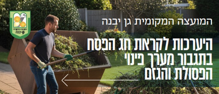 המועצה המקומית גן יבנה נערכת לניקיונות החג עם תגבור משמעותי של מערכי הפינוי ברחבי היישוב; שימו לב: יום שלישי ה-31.3 הוא היום האחרון להוצאת פסולת מוצקה – לאחר מכן תתבצע אכיפה מוגברת.