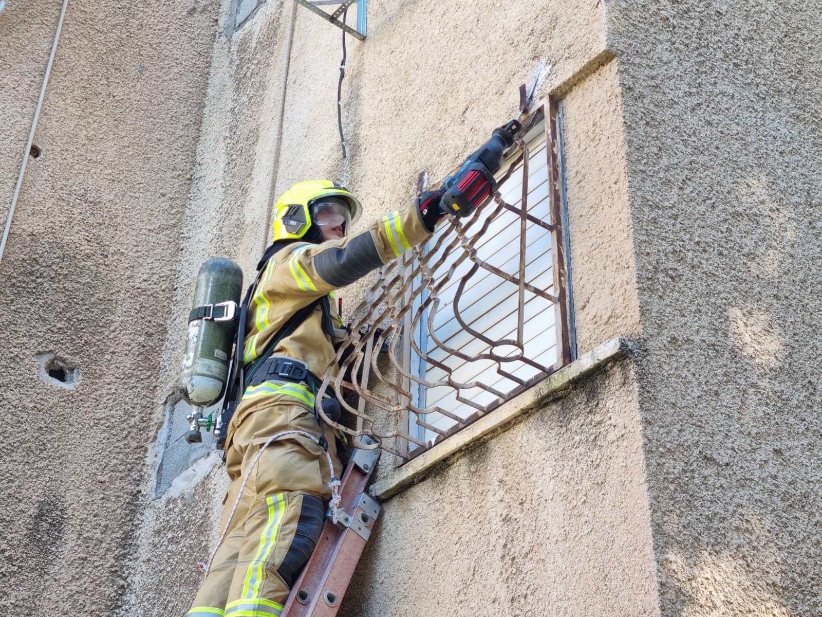 צוות תחנת הכיבוי קריית אונו קיים אימון חילוץ והצלה בבניין שלפני הריסה ברחוב לוי אשכול בעיר