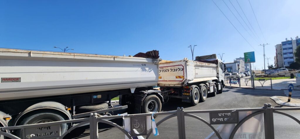 בתמונה: משאיות ברחבי העיר, הפתרון בקרוב.