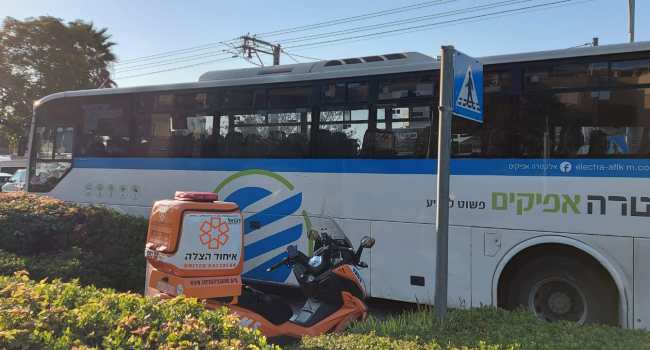 היום (שלישי) בצהריים התקבל דיווח במוקד 101 של מד"א במרחב איילון על הולכת רגל שנפגעה מאוטובוס בשדרות העצמאות ביבנה. חובשים ופראמדיקים של מד"א מעניקים טיפול רפואי ומבצעים פעולות החייאה באישה כבת 70. זמן קצר לאחר מכן נקבע מותה.