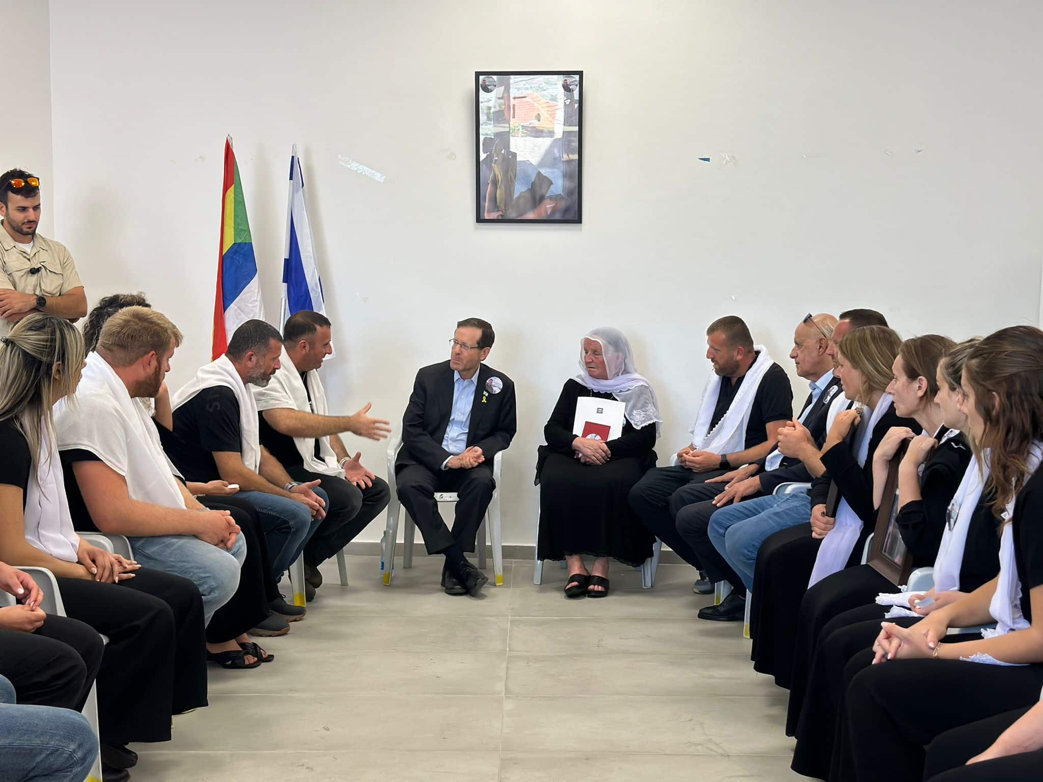 בסיום, הגיע הנשיא לנחם את משפחתו של רב-סרן ג׳לאא איברהים ז״ל מהיישוב הדרוזי סאג׳ור, קצין הנדסה אמיץ לב שנפל השבוע בקרב ברצועת עזה.