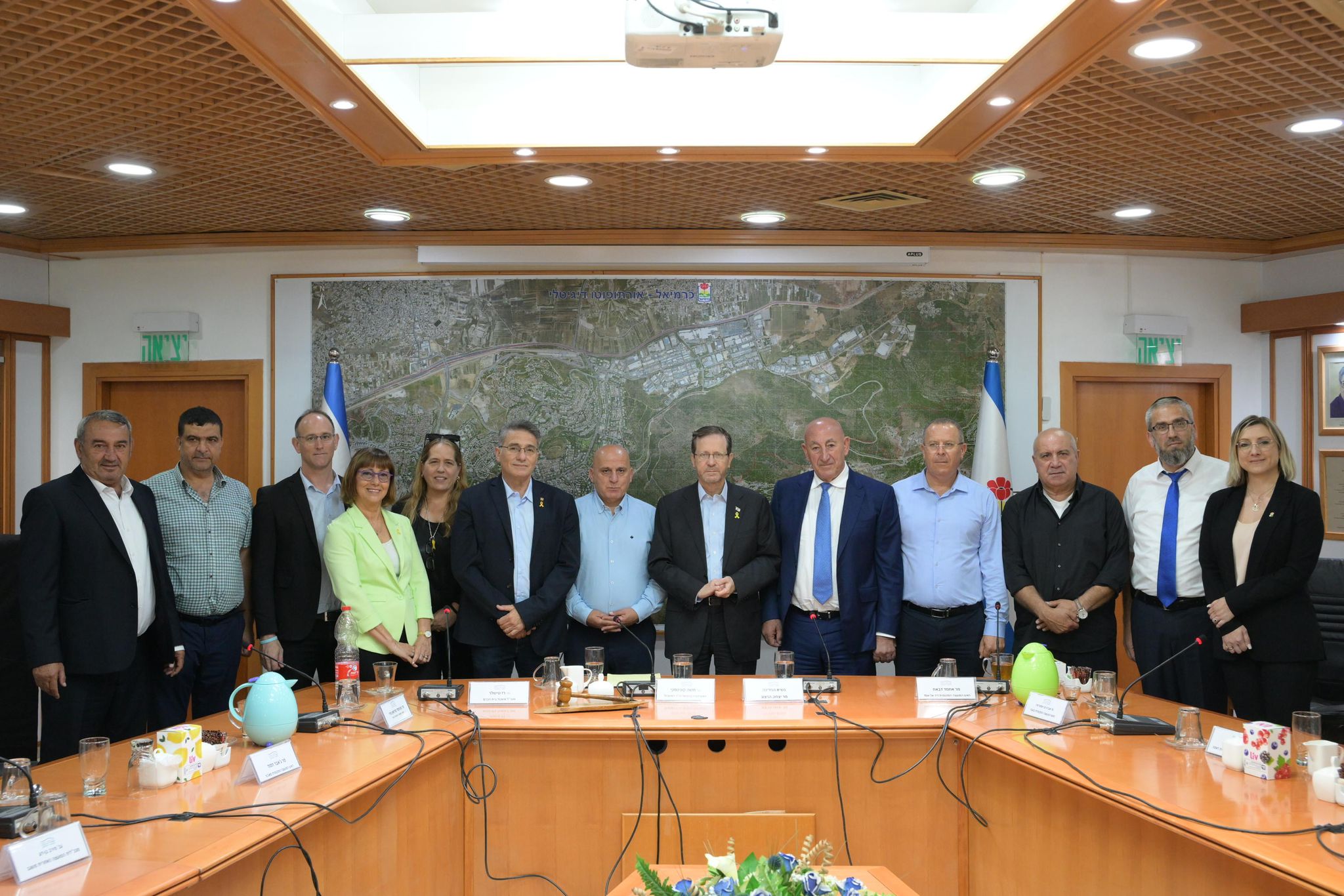 תחילה, ביקר הנשיא בעיר כרמיאל שם התקבל על ידי ראש העיר משה קונינסקי, ונפגש עם חברי מועצת אשכול בית הכרם, ויחד הם דנו באתגרי התעסוקה באזור. בפגישתם, חברי המועצה גינו בחריפות את פיגוע הטרור שבוצע בכרמיאל שבוע קודם לכן, והדגישו את מחויבותם העמוקה לחיים משותפים ולמאבק כנגד הטרור והשנאה.