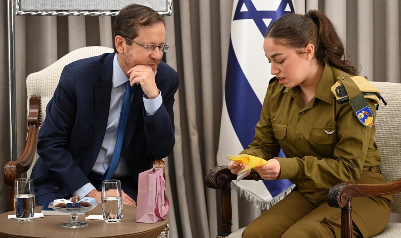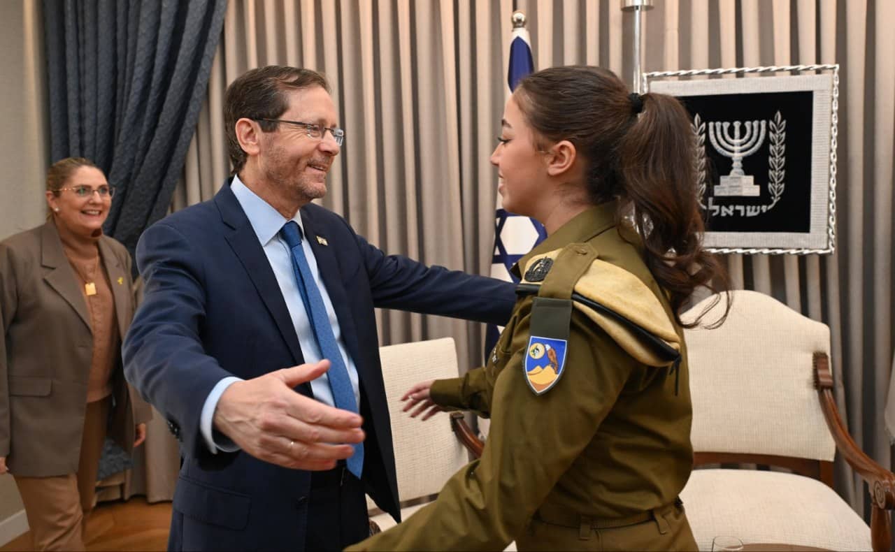 נשיא המדינה ורעייתו נפגשו עם החיילת אורי מגידיש שלראשונה מאז ה-7.10 לבשה את מדי צה"ל