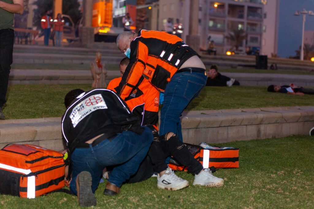 צוותי הרפואה של איחוד הצלה העניקו סיוע לגבר, כבן 30, שאותר מוטל חבול ומדמם בגינה ציבורית הסמוכה לרחוב שמחה ארליך פינת בן צבי בנתניה.