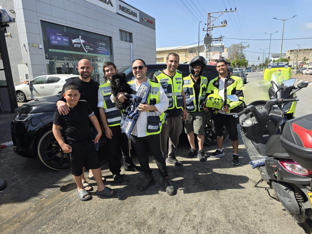 מישאל שי לוי, מוקדן ידידים, ענה לשיחה במוקד והזעיק מתנדבים לכתובת. נריה נהמי, אברהם כהן, עומר טולדו ושלמה שנק, מתנדבי סניף נתניה, יחד עם פנחס כהן – חבר יחידת האופנועים, וגיא אטיאס – מנהל סניף מושבי השרון, נענו לקריאה והגיעו במהירות למקום. באמצעות הציוד הייעודי שברשותם, חילצו המתנדבים את הכלב בשלום, ללא גרימת נזק לרכב.