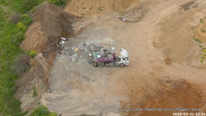 גיא נחושתן, ראש צוות דרום במשטרה הירוקה של המשרד להגנת הסביבה: "מדובר בקבלן פינוי שהחליט להשליך את פסולת הבניין שלו בלב שטח חקלאי באופן לא חוקי. בתום חקירה סמויה, פשטנו על אתר הפסולת הפיראטי ועצרנו את הפגיעה הסביבתית החמורה. אנחנו פועלים לילות כימים במטרה לעצור את עברייני הסביבה, שמשליכים פסולת בשטחים פתוחים ופוגעים בציבור".