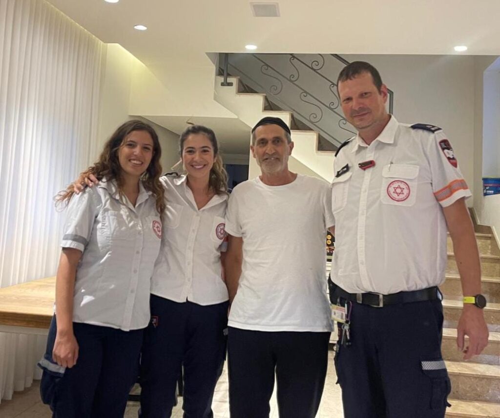 אורן קיינר, פאראמדיק מתנדב במד"א שחזר: "כמה דקות אחרי תחילת המשמרת הזניקו אותנו להעניק טיפול רפואי לגבר מחוסר הכרה בעיר, מהדיווח שקיבלנו הבנו שמדובר באירוע חירום משמעותי. הנסיעה מהתחנה ארכה רגעים בודדים ומיד כשהגענו רצנו פנימה ולא איבדנו שנייה – חיברנו את מכשיר המפעם והתחלנו בעיסויים. לאחר עשר דקות מאומצות של החייאה, הדופק חזר ופינינו את אברהם במצב קריטי להמשך טיפול בבית החולים".