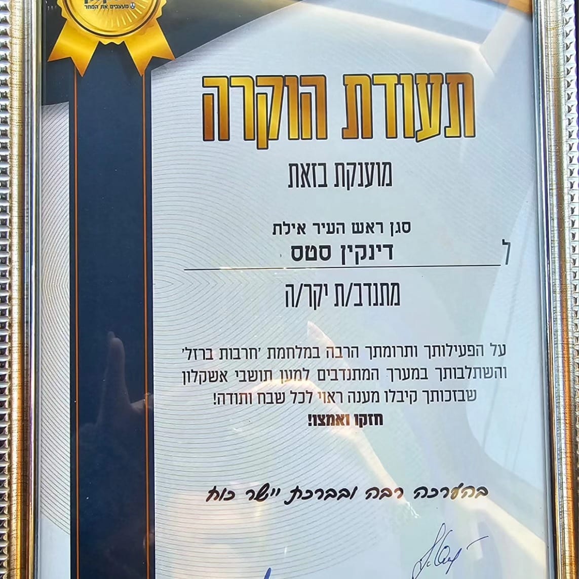 מרגש: סגן ראש עיריית אילת, סטס דינקין, הוזמן בסוף השבוע לאירוע שנערך על ידי עיריית אשקלון, העומד בראשה תומר גלאם וממלאת מקומו סופה ביילין, בסימן הכרת הטוב.