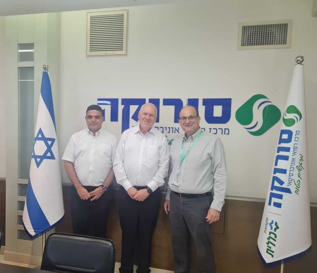 לאחר הביקור בהיכל באר שבע, ביקרו ממלא מקום הנשיא והמנהל במרכז הרפואי סורוקה, שם שמעו סקירה מפי מנהל המרכז, פרופ' שלומי קודש, על אודות תפקוד בית החולים ביום השבעה באוקטובר ועל האתגרים הרבים שאפיינו את השנה החולפת. במסגרת הסיור, ביקרו במחלקות השיקום והטיפול הנמרץ, ופגשו מטופלים ואת צוות בית החולים.