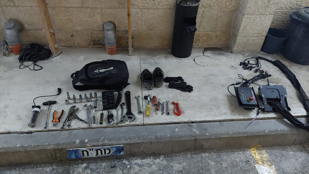 במקום נתפסו כלי פריצה, כפפות ואמצעים נוספים. כמו כן נתפס בקר שליטה של מנוף המשאית שהנו יקר ערך.