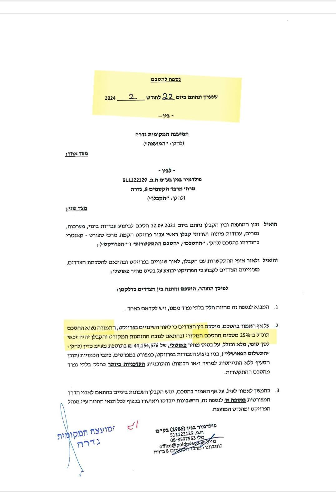 סערה פוליטית סוערת בגדרה: ראש העיר הנבחר סהר פינטו פירסם פוסט חריף נגד ראש המועצה הקודם, יואל גמליאל, בו הוא מאשים אותו בחתימה לא חוקית על מסמך שהגדיל את התשלום לקבלן פרויקט הקאנטרי בלמעלה מ – 20 מיליון ש"ח, ימים ספורים לפני הבחירות.