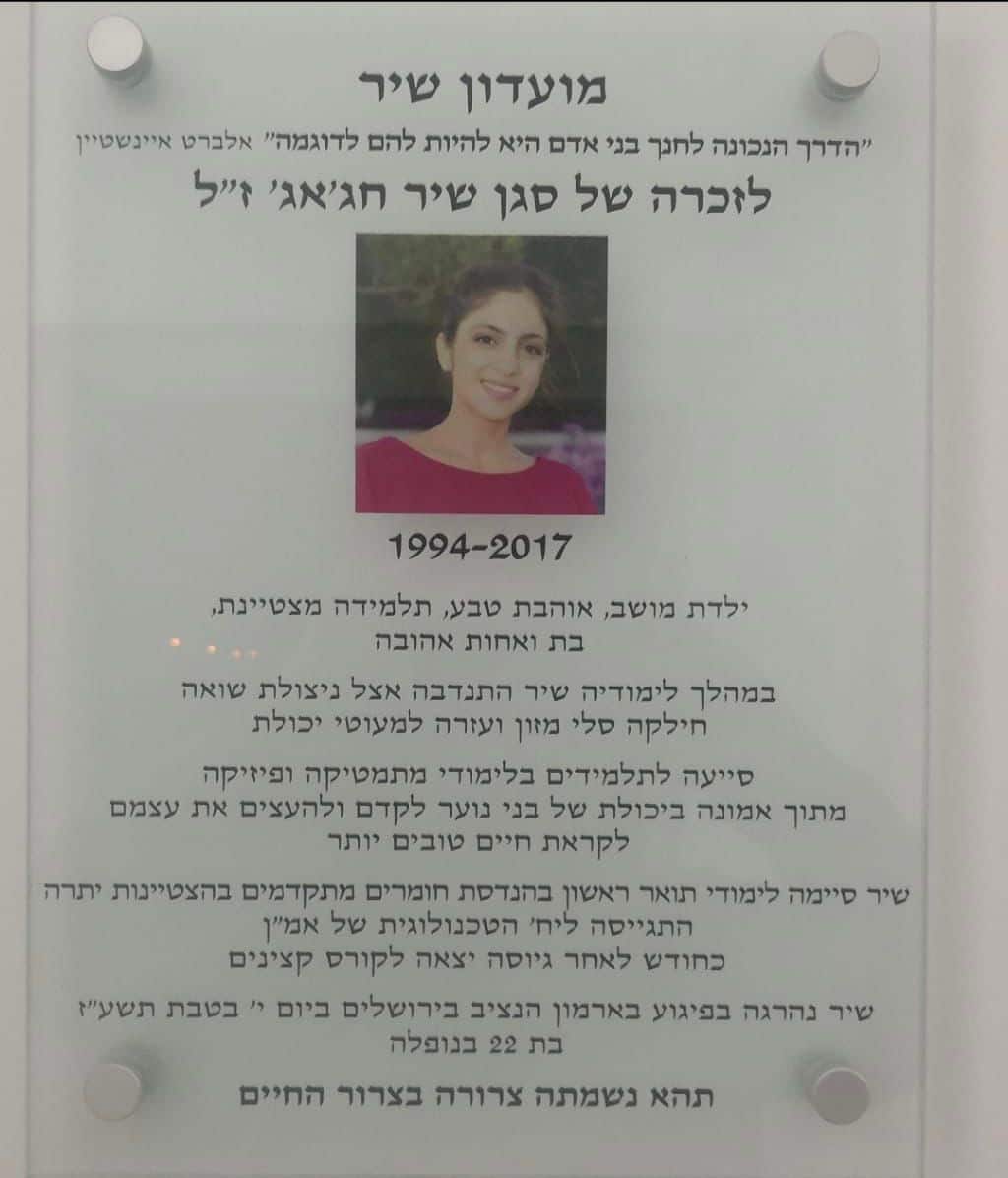 שיר נולדה ביום כ"ז באדר תשנ"ד (10.3.1994) במושב עזריה הסמוך לרמלה. אחות בכורה של בר, פז ואגם. ב-13.12.2012 התגייסה שיר, תושבת מעלה אדומים, לצה"ל. היא שירתה בחיל המודיעין, ולקראת סוף 2016 יצאה לקורס קצינים. הצוערת שיר נפלה בפיגוע חבלני בירושלים ביום י' בטבת תשע"ז (8.1.2017). בפיגוע, בטיילת ארמון הנציב, שיר הייתה בת 23 בנפלה.