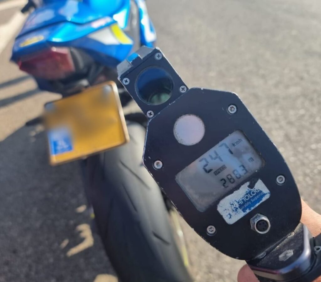 רוכב אופנוע, תושב נס ציונה, נתפס במהירות מופרזת של 247 קמ"ש בכביש 1 בו המהירות המותרת הינה 90 קמ"ש בלבד.
