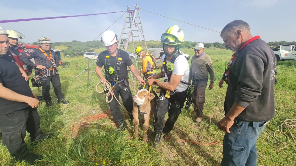 במוקד 102 של כבאות והצלה לישראל התקבל דיווח על עגל שנפל לבור בעומק של כ- 50 מטרים במושב אמציה – הממוקם בחבל לכיש במועצה אזורית לכיש