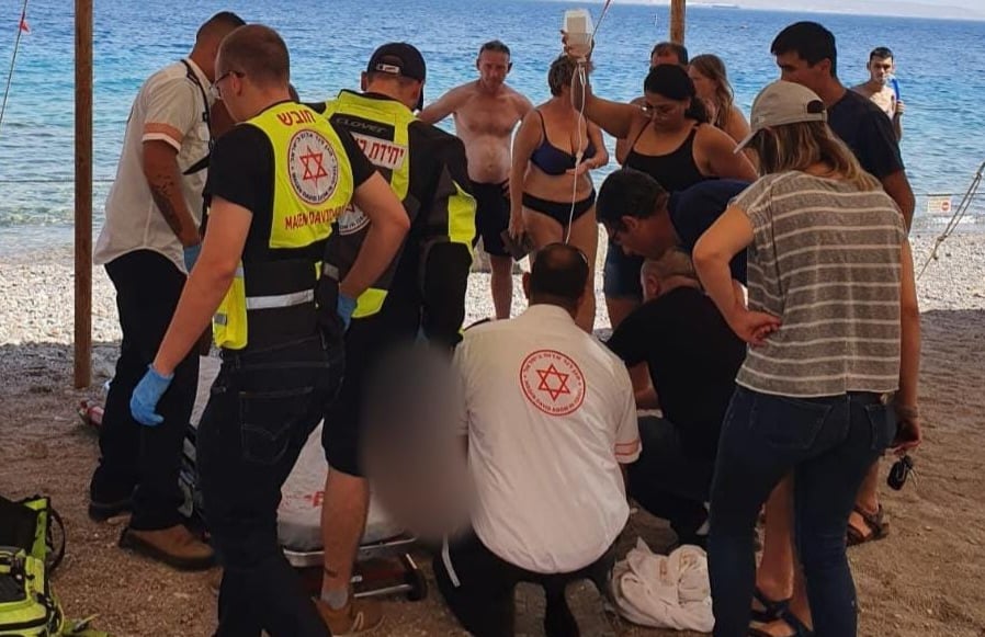 חובש רפואת חירום במד"א נחמן שי רביבו סיפר: "כשהגעתי לחוף ראיתי את הגבר שוכב על החול מתחת לציליה כשאזרחים מעניקים לו טיפול רפואי ראשוני בהנחיית מוקד 101 של מד"א. הם סיפרו לנו שהם זיהו את הגבר מחוסר הכרה במים ומשו אותו לחוף. הענקנו לו טיפול רפואי וביצענו בו פעולות החייאה מתקדמות שכללו הנשמות, עיסויים ומתן תרופות. הכנסנו אותו לניידת טיפול נמרץ ופינינו אותו לבית חולים תוך המשך ביצוע פעולות החייאה כשמצבו קריטי".
