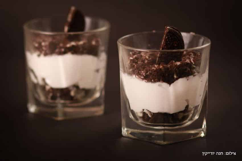4. יוצקים מהתערובת על שכבת עוגיות האוראו בכל כוס ומפוררים שכבה נוספת של עוגיות מפוררות מעל המלית. מכניסים את הכוסות למקפיא למשך שעתיים ומגישים.