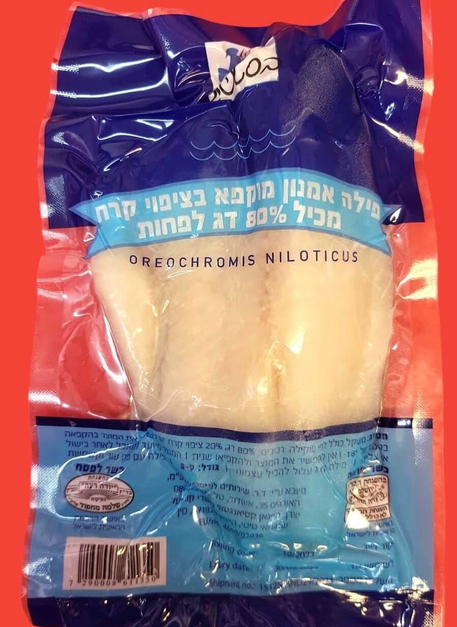 שם המוצר: פילה אמנון מוקפא בציפוי קרח מכיל 80% דג לפחות, בשם המותג: בסט פיש