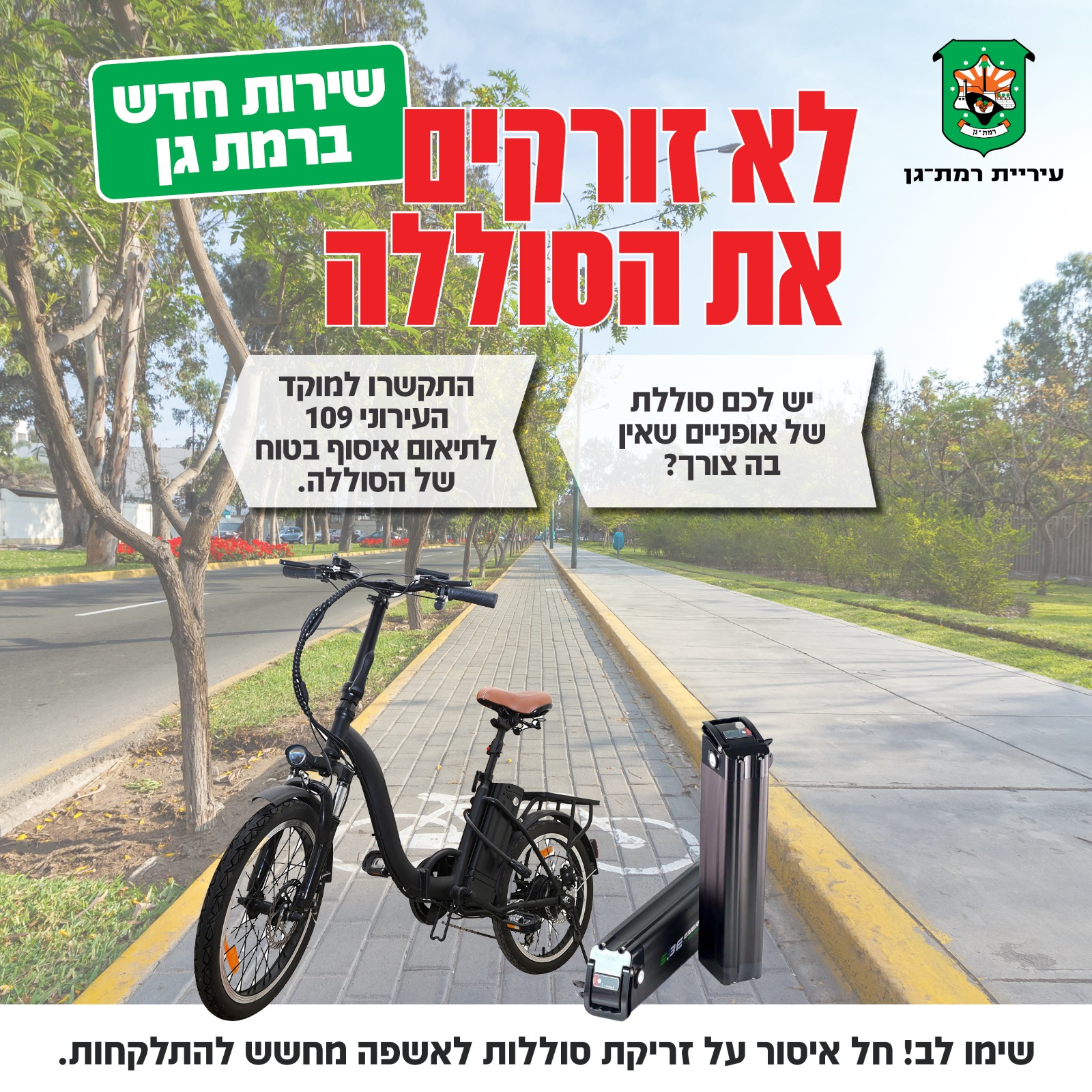 עיריית רמת גן משיקה שירות חדשני וראשון מסוגו – איסוף מבית התושב של סוללות אופניים חשמליים שיצאו משימוש. היוזמה החדשה מצטרפת לשורת מהלכים סביבתיים שמקדמת העירייה. הסוללות של האופניים החשמליים מהוות סיכון בטיחותי משמעותי כאשר הן מושלכות באופן לא מבוקר. סוללות אלו עלולות להתלקח ולגרום לשריפות מסוכנות, במיוחד כשהן אינן מגיעות למתקני איסוף ייעודיים. השירות החדש נועד להתמודד עם עניין זה ולהבטיח את בטיחות התושבים.