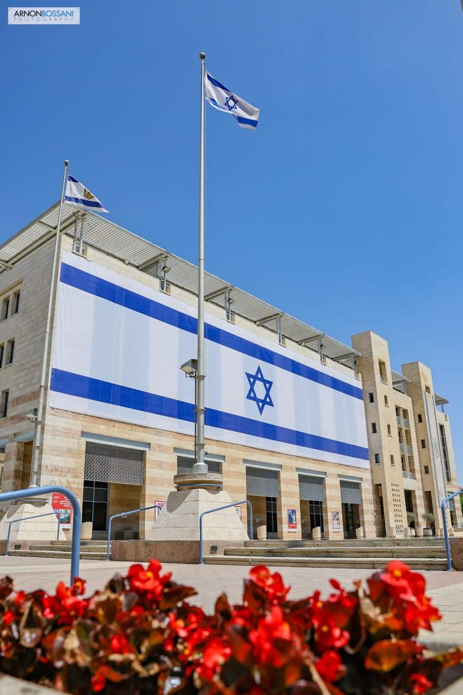 עיריית ירושלים משלימה את ההיערכות לציון מועדי הלאום בבירה: דגל ישראל ענק בגודל של כ-500 מ"ר נתלה בחזית בניין העירייה