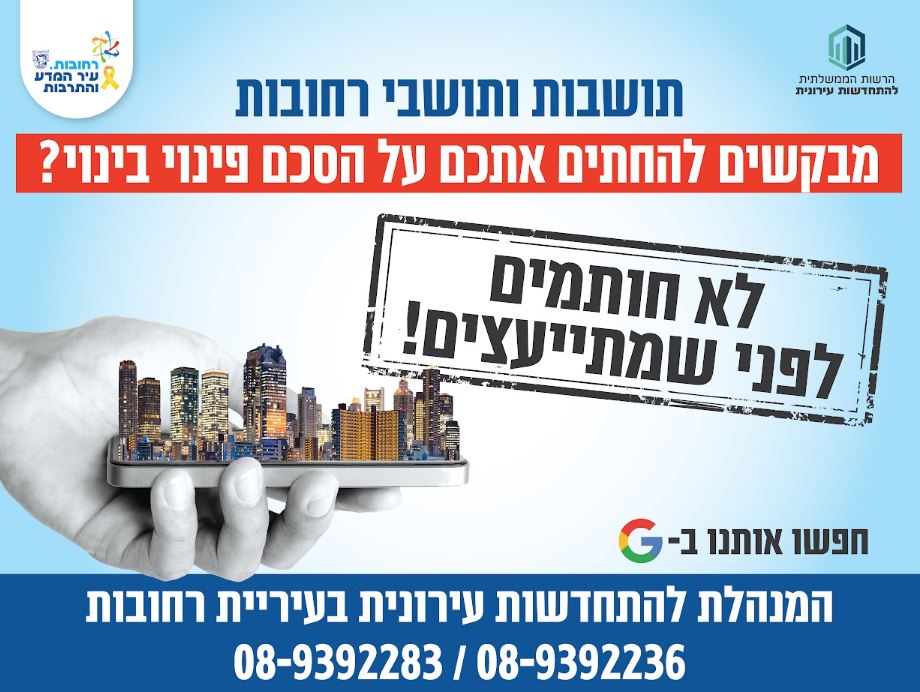 ליצירת קשר עם המנהלת להתחדשות עירונית: 08-9392283 08-9392236
