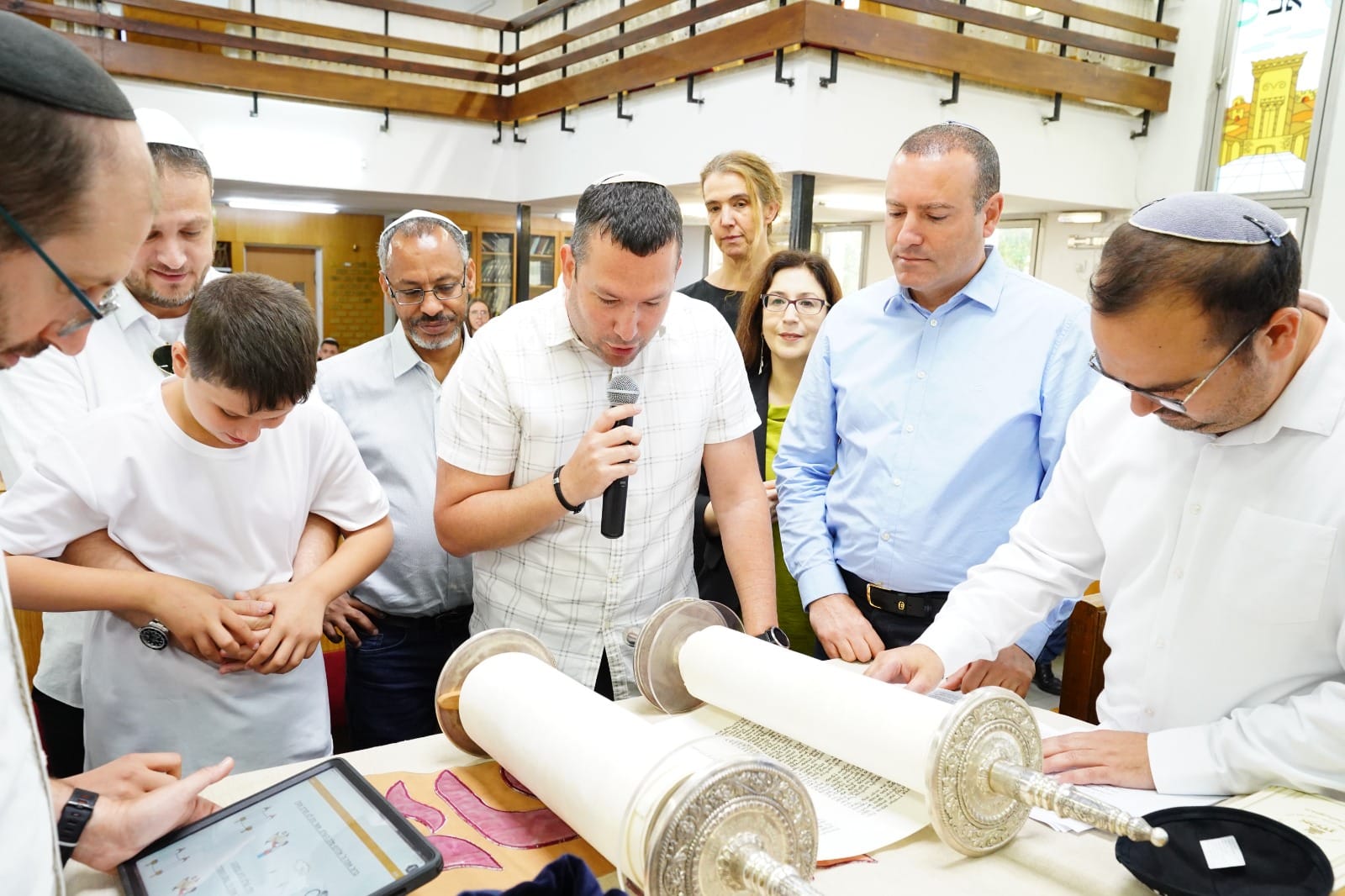 תלמידי בית הספר לוטם הגיעו לבית הכנסת הבוקר כשהם נרגשים להניח תפילין בפעם הראשונה. התלמידים הנמצאים על רצף האוטיסטי (ASD) הגיעו מלווים בבני משפחותיהם ועלו כל אחד בתורו, למרכז בית הכנסת כדי לקרוא בתורה, לראשונה בחייהם. את מאור לביא ליווה אור יפרח, את עילאי אמסלם ליווה מרום קטבי, את יואב שופס ליווה אילן אולטי, את עידן ליזדי ליווה אביחי פוקס, את שגיא לוביץ ליווה גיא מוליחי, את אושר שרצר ליווה אייל מרק ואליהם הצטרף גם התלמיד דביר צוברה שהנחה את תלמידי לוטם בסבלנות אין קץ.