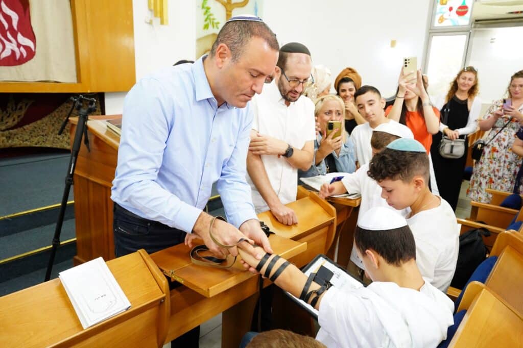תלמידי בית הספר לוטם הגיעו לבית הכנסת הבוקר כשהם נרגשים להניח תפילין בפעם הראשונה. התלמידים הנמצאים על רצף האוטיסטי (ASD) הגיעו מלווים בבני משפחותיהם ועלו כל אחד בתורו, למרכז בית הכנסת כדי לקרוא בתורה, לראשונה בחייהם. את מאור לביא ליווה אור יפרח, את עילאי אמסלם ליווה מרום קטבי, את יואב שופס ליווה אילן אולטי, את עידן ליזדי ליווה אביחי פוקס, את שגיא לוביץ ליווה גיא מוליחי, את אושר שרצר ליווה אייל מרק ואליהם הצטרף גם התלמיד דביר צוברה שהנחה את תלמידי לוטם בסבלנות אין קץ.