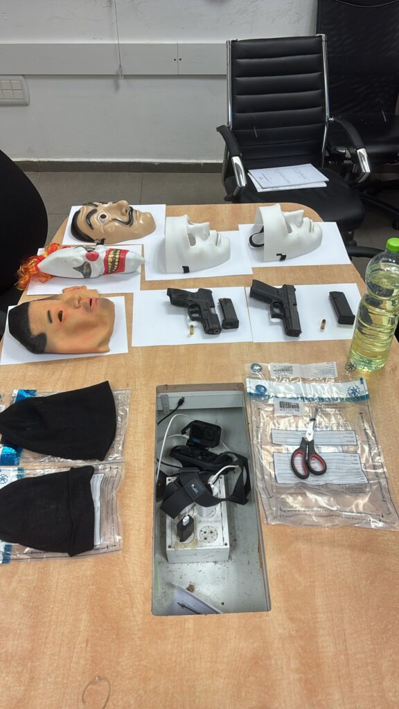 בלשי ימ״ר נגב ולוחמי לוט״ר משמר לאומי דרום עצרו שני חשודים עם אקדחים טעונים, מסכות וכובעי גרב