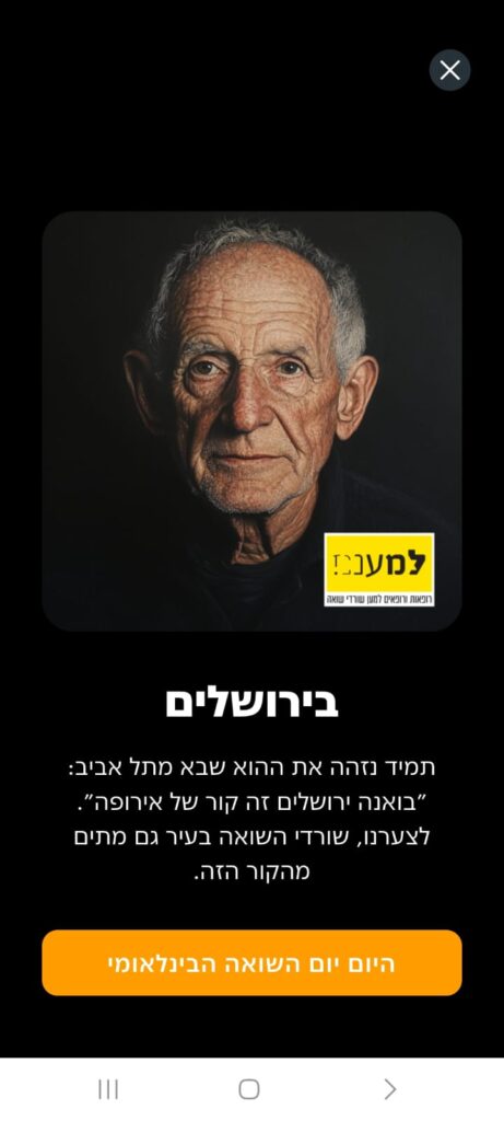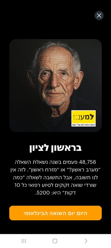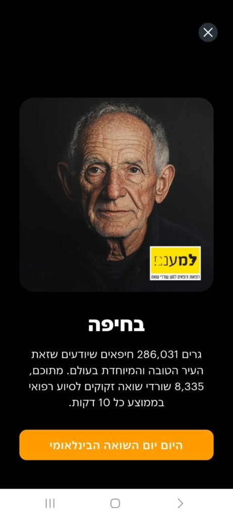 יוזמה מרגשת: חברת Gett ועמותת "למענם-רופאות ורופאים למען שורדי שואה" משיקות פרויקט מיוחד לציון יום השואה הבינלאומי, המשלב באופן מקורי את המרחב העירוני המוכר עם המציאות של ניצולי השואה החיים בה. המיזם פועל להעלאת המודעות באמצעות יצירת מפגש בלתי צפוי בין השגרה היומיומית לבין נתונים מעוררי מחשבה על ניצולי השואה.