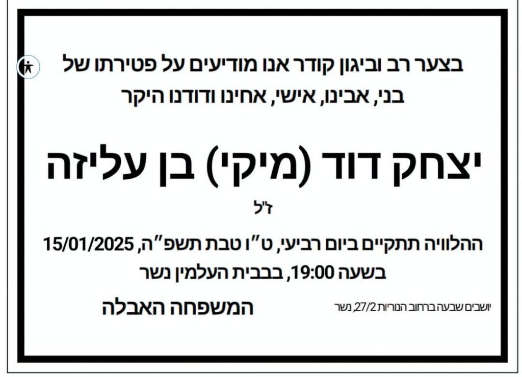 אנו שולחים כולנו – כל חברי מועצת העיר – תנחומים למשפחה ומי ייתן שנשמתו תהיה בצרור החיים ומנוחתו עדן".