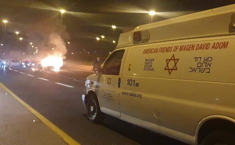 הפרמדיקים יהודה מרקוס וטל זנזורי סיפרו: "מדובר באירוע קשה, הרכבים היו במרחק של עשרות מטרים אחד מהשני כשאחד מהם עלה באש. במקביל לפעולות הכיבוי של לוחמי האש, הענקנו טיפול רפואי לשני פצועים מהרכב השני, שהיו לכודים וסבלו מחבלות בגפיים. לאחר החילוץ העברנו אותם לניידות טיפול נמרץ והם פונו לבתי החולים. כשהרכב שבער כובה, וניתן היה להתקרב אליו, זיהינו בתוכו אישה מחוסרת הכרה ללא סימני חיים. לא נותר לנו אלא לקבוע את מותה".