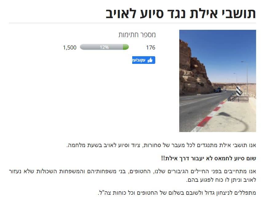 עצומה חדשה ברשת: תושבי אילת נגד סיוע לאויב