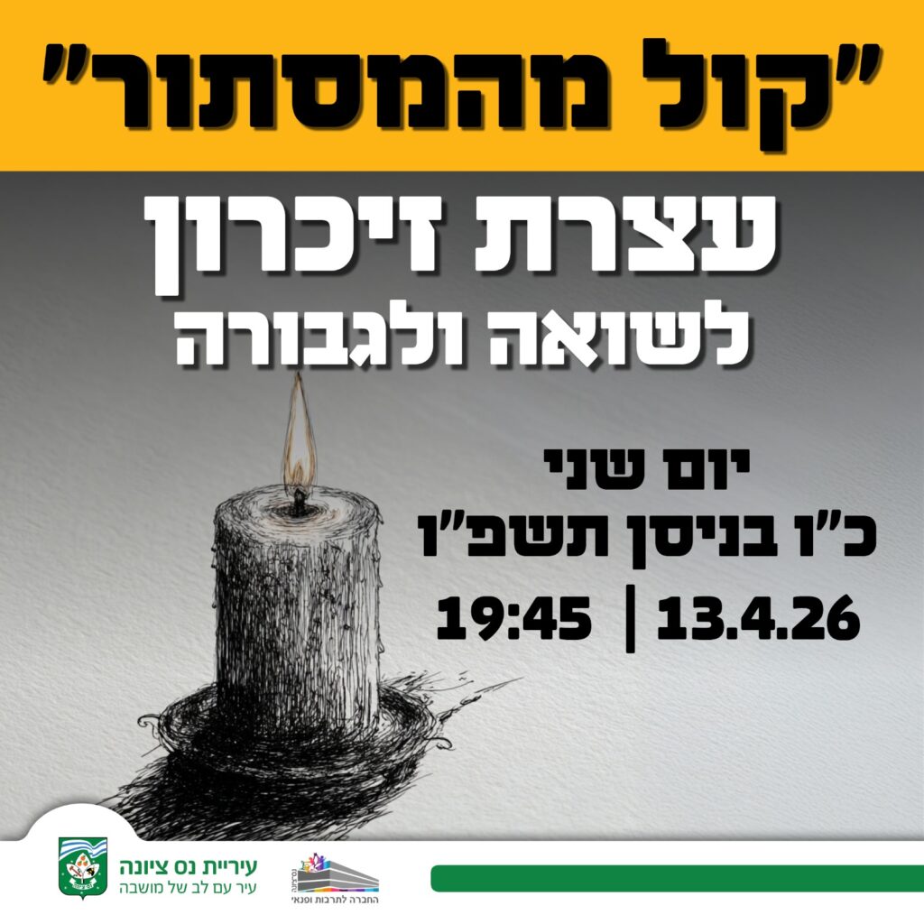במסגרת האירועים, תתקיים ביום שני, 13 באפריל, עצרת זיכרון לשואה ולגבורה תחת הכותרת "קול מהמסתור", שתיערך בהיכל התרבות בעיר. העצרת נועדה להנציח את זכר ששת מיליון הנספים בשואה ולהוקיר את סיפורי הגבורה – עבור הדורות הבאים.