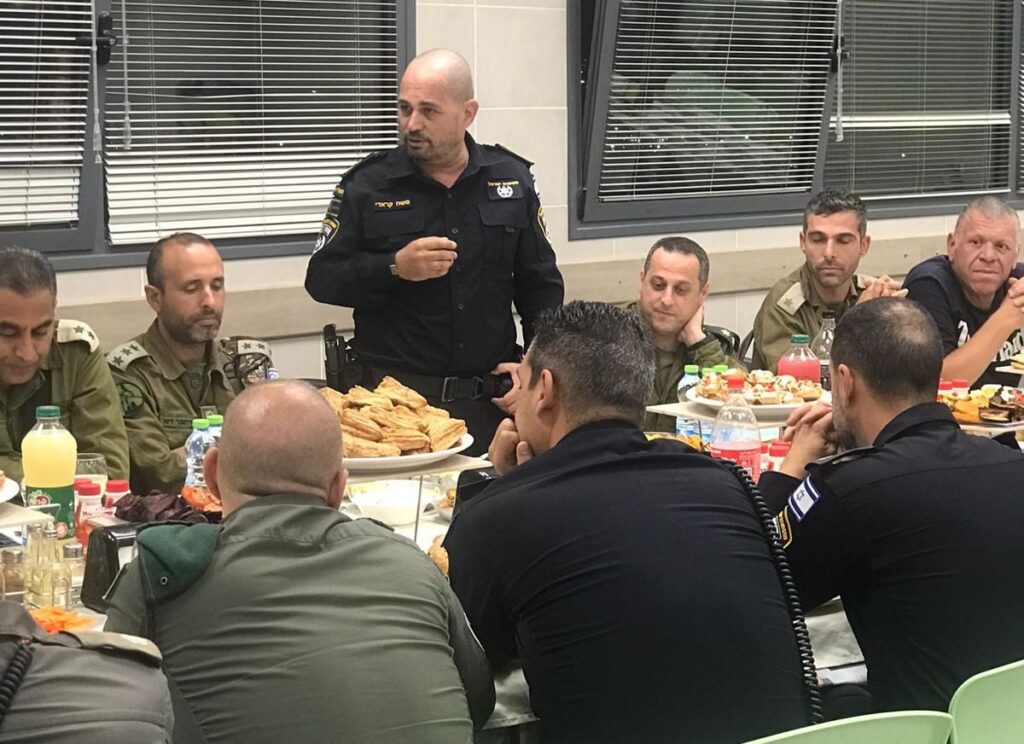 ״התכנסנו כאן הערב לכבודכם", אמר מ״מ מפקד מרחב אילת, סנ״צ משה קראדי בפתח הארוחה החגיגית. "אנחנו מובילים יחד את התפיסה הבטחונית במרחב המרוחק ביותר והמאתגר מבחינה זו. ואנו נערכים יחד לכל תרחיש באופן מוקפד, כל זאת כדי להבטיח את המענה הביטחוני המיטבי ביותר. מבחינתי הערב הזה מייצג את משמעותם של ערכי הרעות והערבות ההדדית – שירות משמעותי כתף לצד כתף. אני מלא ההערכה ומוקיר את שיתוף הפעולה שלכם עימנו לאורך כל השנה ובפרט בתקופה הזו, מתוך הבנת חשיבות המשימה ומסירות אין קץ למען תושבי מרחב העיר אילת והשוהים בה״.