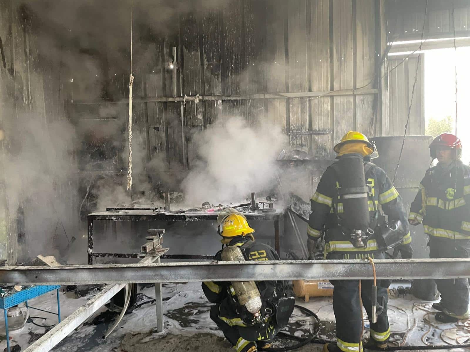 צוותי כיבוי וחילוץ, בפיקודו של רב רשף עירון הירשפלד, פועלים בשריפה במחסן בעיר לוד, ברחוב מיכה רייסר. מדובר במחסן בחצר בית, לוחמי האש פועלים לכיבוי.