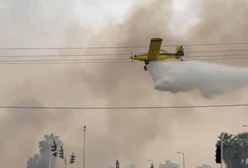 ברגעים אלה מטוסי הכיבוי בפעולה מעל מושב מנוחה, וצומת פלוגות. כביש 40, צומת פלוגות נחסם לתנועה ל-2 הכיוונים – וכל אלה בעקבות שריפה בחורש שסמוך לכביש.