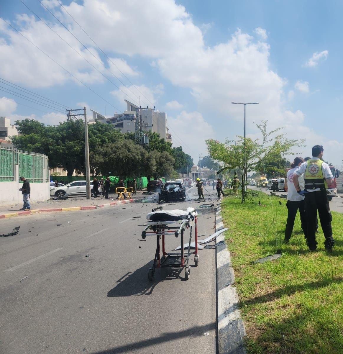 במוקד 101 של מד"א במרחב איילון, על רכב שהתפוצץ ברחוב יחזקאל ברמלה. חובשים ופראמדיקים של מד"א מדווחים על גבר ללא סימני חיים וקובעים את מותו.