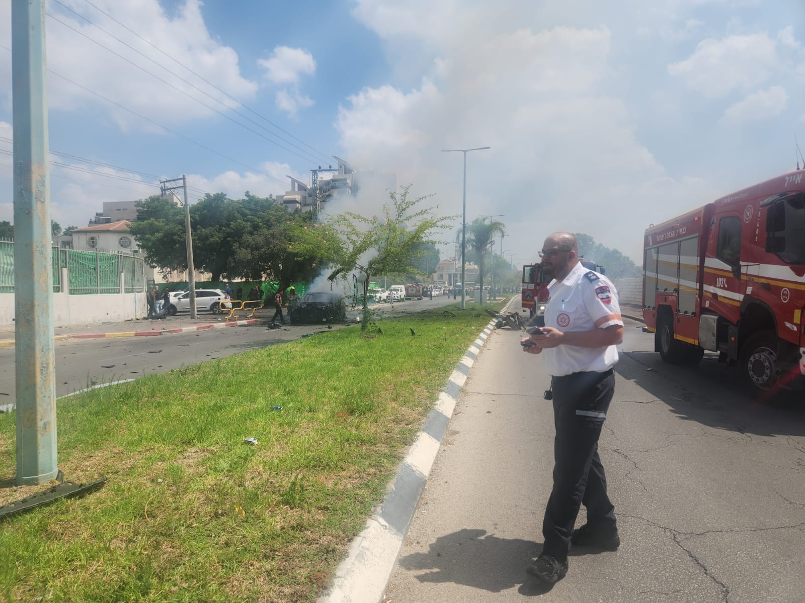 "הגענו למקום וראינו עשן ולהבות יוצאים מהרכב. לאחר פעולות הכיבוי של לוחמי האש ראינו גבר מחוסר הכרה ללא דופק וללא נשימה. ביצענו בדיקות רפואיות אבל לצערנו נאלצנו לקבוע את מותו במקום."