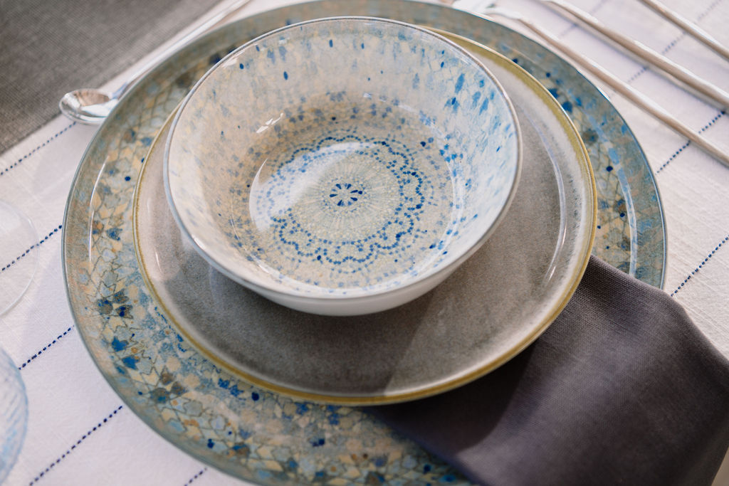 Nina – סדרת פורצלן בגימור מבריק, המשלבת בין גלזורה אפורה עם שוליים ירקרקים לבין דיגום מוזאיקה בגווני אפור, ירוק וכחול מחמיאים המדמה עבודת יד. הסדרה מאפשרת משחק והתאמה בין כלים חלקים בעלי צורה ניטרלית לבין פריטים מודפסים, ליצירת שולחן עשיר אך מאוזן.